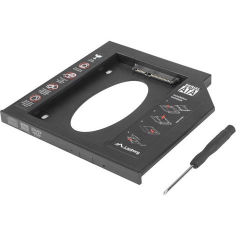 Obudowa przeznaoczna na dysk 2,5" HDD lub SDD, pozwala na zamontowanie dodatkowego dysku w miejscu laptopowej stacji dysków do wysokości 9,5mm. Zdejmowana klapka z przodu obudowy pozwala na założenie fabrycznej zaślepki od stacji CD co powoduje, że obudowa nie przeszkadza w codziennym użytkowaniu.