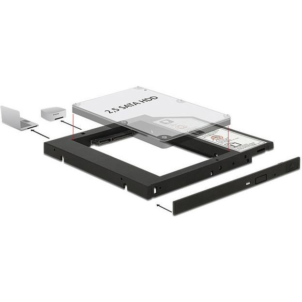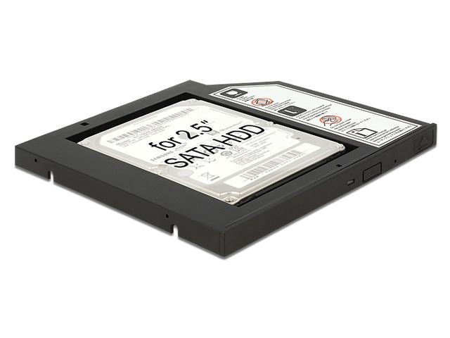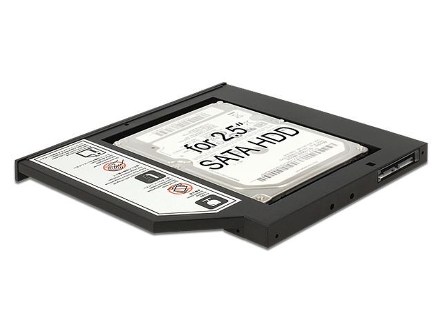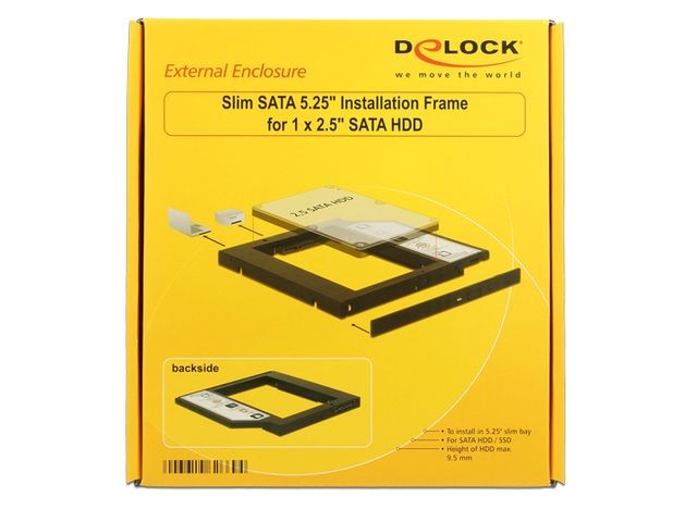 Wąską ramkę montażową firmy Delock można zainstalować w wąskim gnieździe SATA 5.25 cala w celu obsługi dysku twardego SATA 2.5 cala....