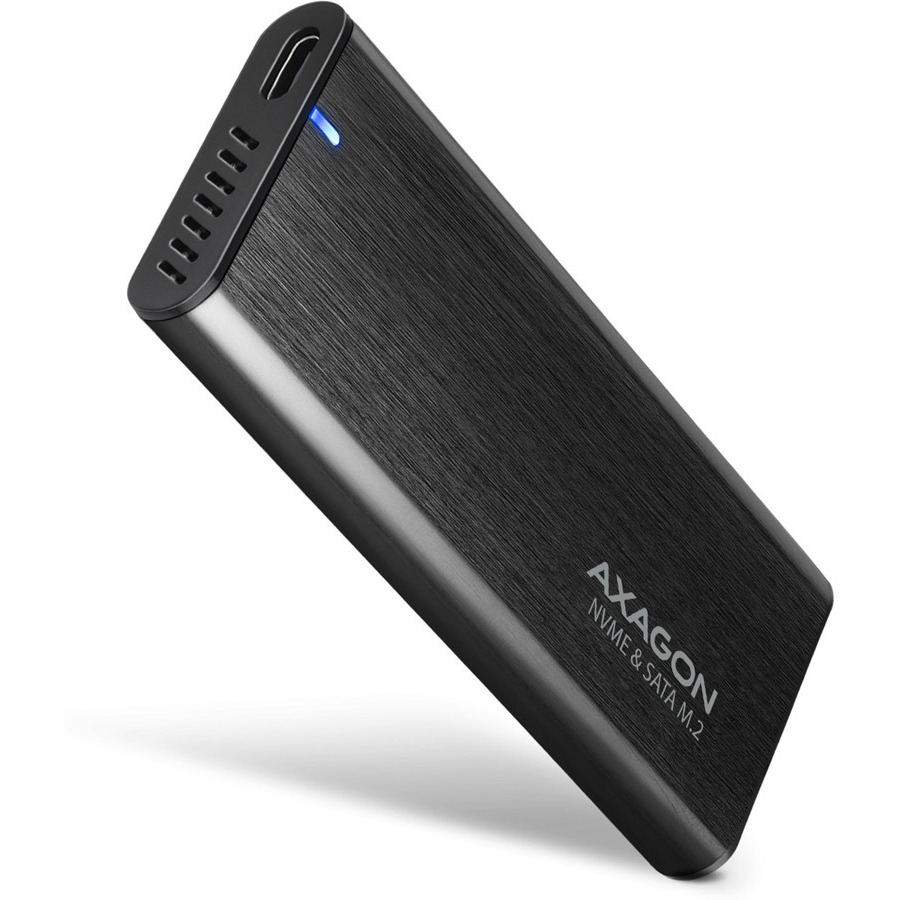 Uniwersalna zewnętrzna obudowa AXAGON EEM2-SB2 RAW z interfejsem USB 3.2 Gen 2 przeznaczona jest dla dysków M.2 NVMe lub SATA SSD. Dwustronne złącze USB-C na obudowie umożliwia niezawodne połączenie. W zestawie znajduje się nie tylko kabel USB-C -> USB-C do podłączenia obudowy do komputera, ale także adapter USB-C -> USB-A. Obudowa można podłączyć do dowolnego wolnego portu USB w notebooku.