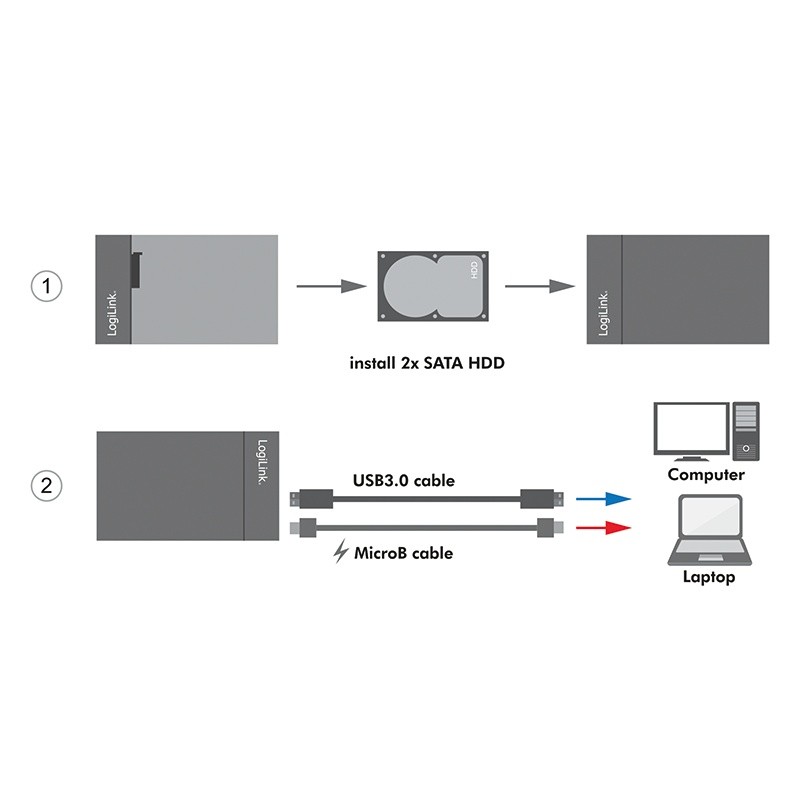 Obudowa 2xHDD/SDD USB 3.0, 2.5 cala, Raid