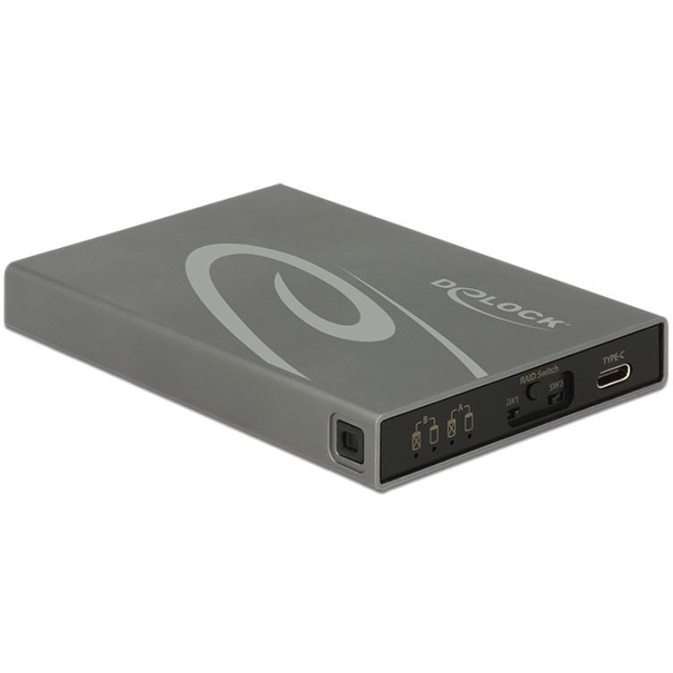 Obudowa aluminiowa firmy Delock umożliwia instalację dwóch dysków SSD M.2 w formacie 2280, 2260, 2242 lub 2230, które można podłączać do komputera osobistego lub laptopa za pomocą portu USB. W przypadku używania więcej niż jeden dysk SSD istnieje możliwość stosowania różnych poziomów RAID.