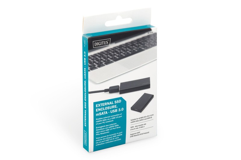 Zewnętrzna obudowa dysku SSD umożliwia podłączenie dysku mSATA SSD przez port USB 3.0 Twojego komputera/notebooka. Przeznaczona do wszystkich dysków mSATA SSD M50 (50 x 30 x 4 mm) (SATA II i SATA III). Złącze mSATA zapewnia dużą prędkość przesyłu danych do maks. 6 Gbit/s. Obudowa dysku SSD obsługuje także funkcję hot-plugging (możliwość podłączania lub odłączania urządzeń peryferyjnych przy włączonym zasilaniu) i Plug&Play. Obsługuje on również UASP, co zwiększa wydajność. Smukła oraz stylowa obudowa z aluminium pozwala na komfortowe przenoszenie danych oraz ich szybki odczyt w każdym miejscu. Nie ma potrzeby stosowania dodatkowego zasilacza, zasilanie następuje poprzez port USB 3.0 Twojego komputera/notebooka.
